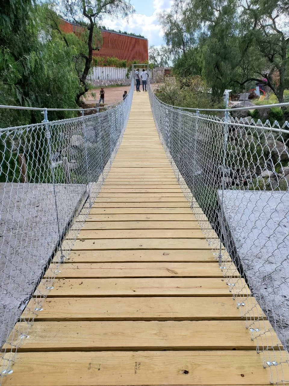 En este desarrollo, Ecoprojects realizo el diseño e instalación de 1 puente colgante peatonal de 30mts de longitud para interconexión del área de la cancha de tenis con el resto del complejo.